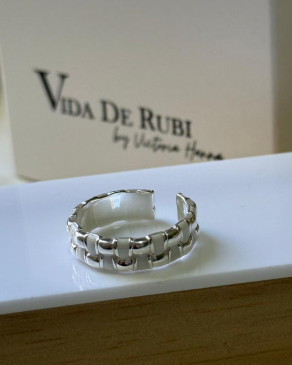 Brillo sutil, diseño contemporáneo. Anillo abierto esmaltado blanco, una pieza moderna que eleva tu estilo.