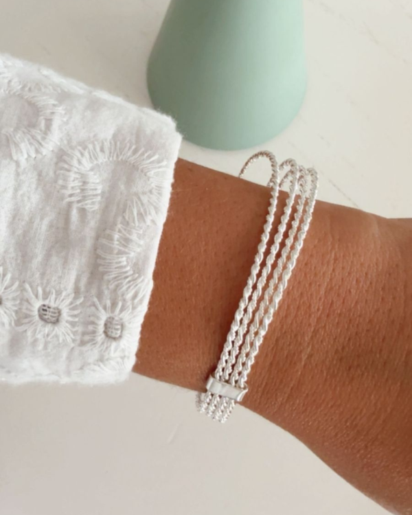 Pulsera importada entrelazada. Es un modelo súper canchero. Mide 7 cm de diámetro interno