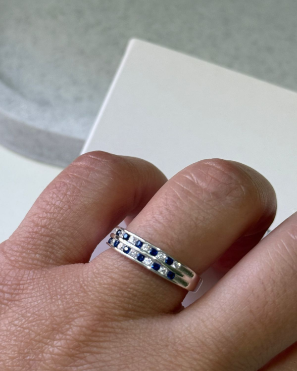 El Anillo Blue Mix presenta una combinación perfecta entre piedras azules y cubic brillantes que realzan todo el diseño. Una pieza moderna, delicada. Hecho en plata 925