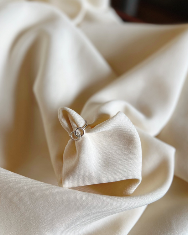 Anillo con circulos entrelazados, uno de ellos con piedras cubic engarzadas