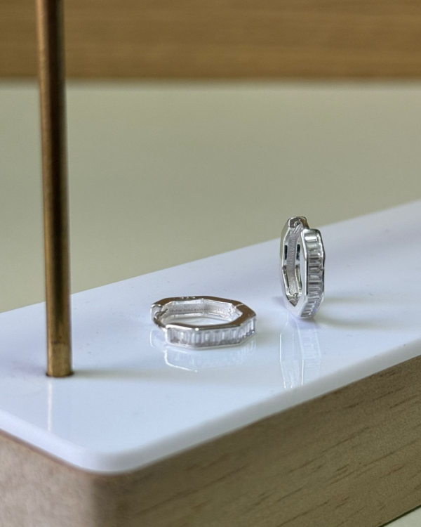 Una pieza pensada para destacar. Cada detalle —desde el corte baguette hasta el cierre click— está pensado para resaltar la esencia moderna de la pieza. Tamaño de 1,2 cm. Hechos en plata 925